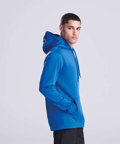 Sporty fit. Twin-needle stitching detail. Self-coloured round drawcords. Three-panel double fabric hood. Kangaroo pouch pocket. Simple tear out label makes it perfect for rebranding. Brushed inner fabric. Self-fabric cuffs and hem.