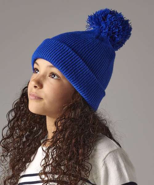 TearAway label for ease of rebranding. Self-coloured pom pom with highly reflective fibres. Unisex styling. Cuffed design for optimal decoration. Double layer knit.