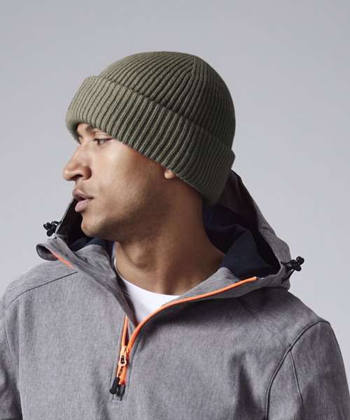 Contains at least 50% recycled polyester. Ribbed knit. Engineered crown for maximum comfort. Cotton Jersey lining for comfort and breathability. Wide cuffed design for optimal decoration. TearAway label for ease of rebranding.