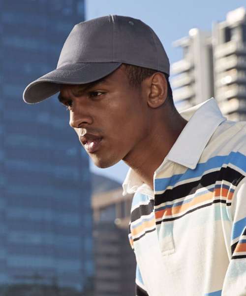 5-panel design. Structured front panels. Semi-curved peak. Stitched ventilation eyelets. Snapback size adjuster. TearAway label for ease of rebranding.