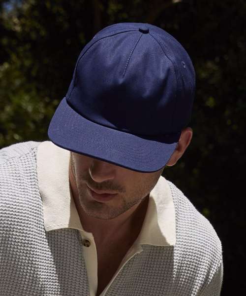 100% Organic cotton. Contains 100% certified organically grown cotton. High profile 5-panel design. Soft unstructured crown. Flat peak. Self-fabric strap with tri-glide buckle. TearAway label for easy rebranding.
