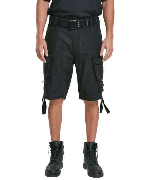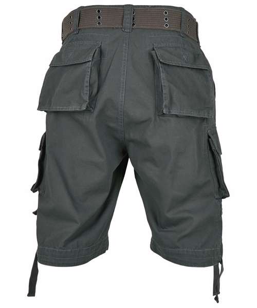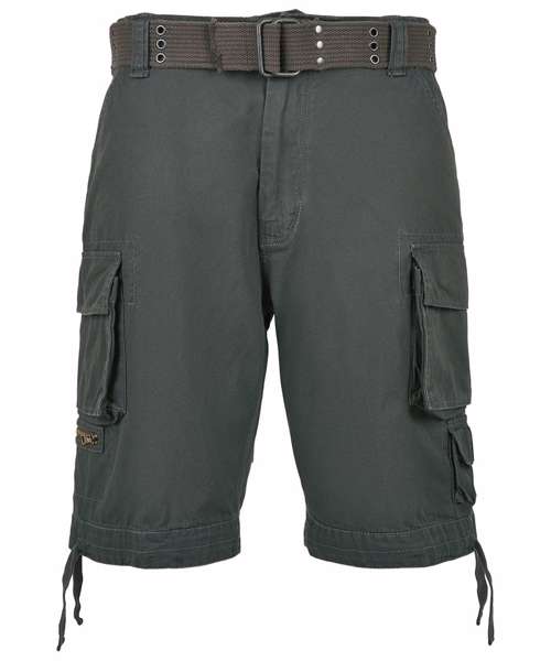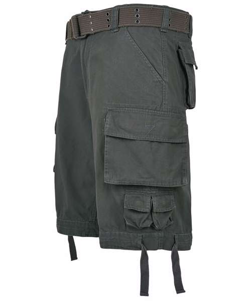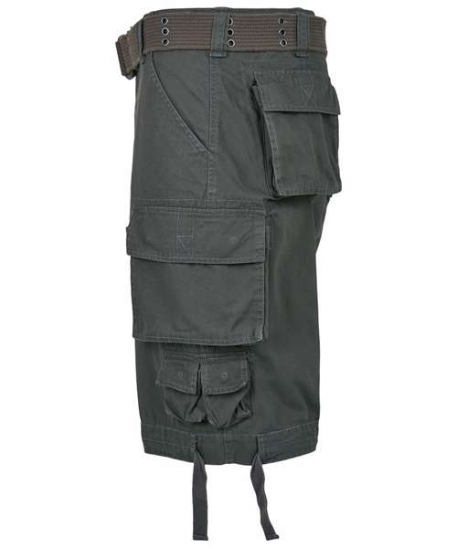 Cargo shorts, used look, included belt, wide leg, leg pockets, 2 attached mini-pockets.
