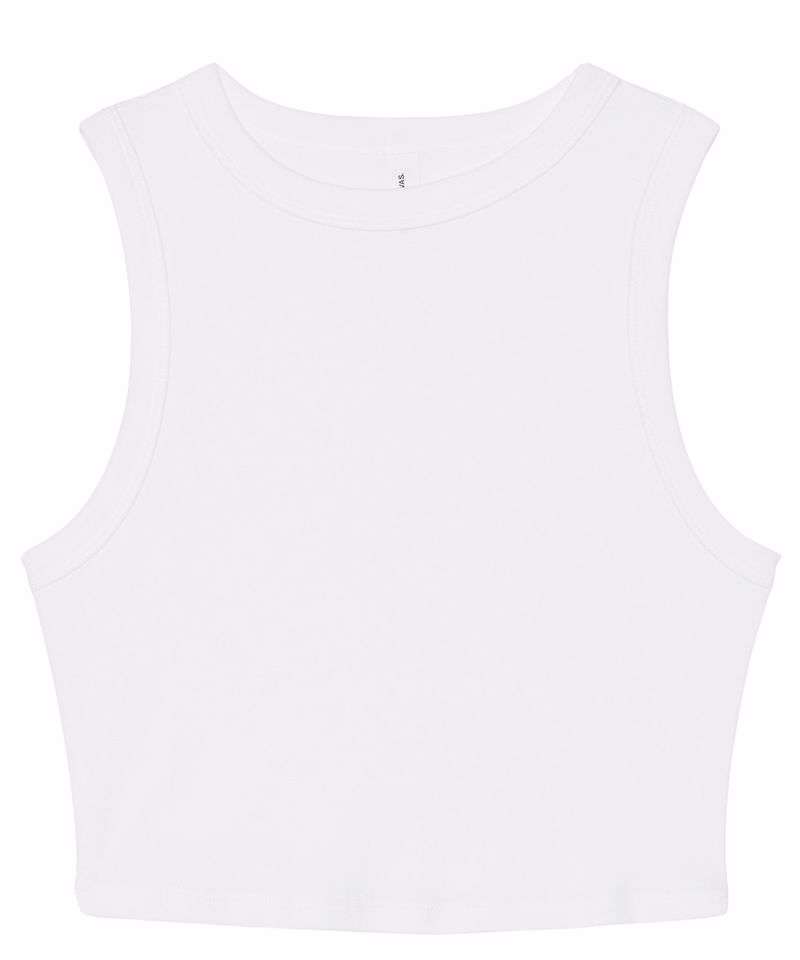 Deep armholes. Cropped. 1x1 micro rib. Fitted. Stretch fit. Pre-shrunk. Side-seamed.