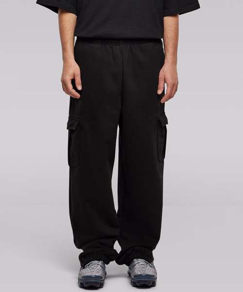 These men’s sweatpants offer patched cargo pockets and a convincing 90s look. They are equipped with an elastic waistband and elastic cuffs, while also featuring additional zips, and the loose fit completes the picture harmoniously. The sweatpants are made from extra-heavy brushed fleece, which can further be refined via flex or screen printing.