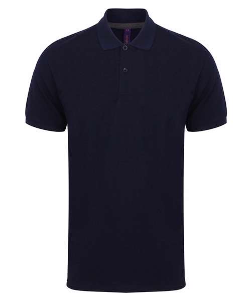 Modern-fit in a lightweight micro-fine piqué with a short point collar, fitted sleeve and cuffs for a modern and fresh new look. Micro-fine piqué is ideal for printing. 2 Button placket, Dyed to match buttons. Contrast herringbone tape in back neck and side vents. Henbury Cut-out back neck brand label.