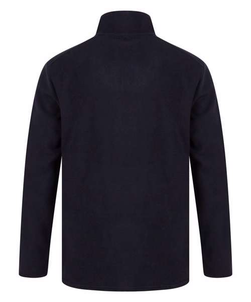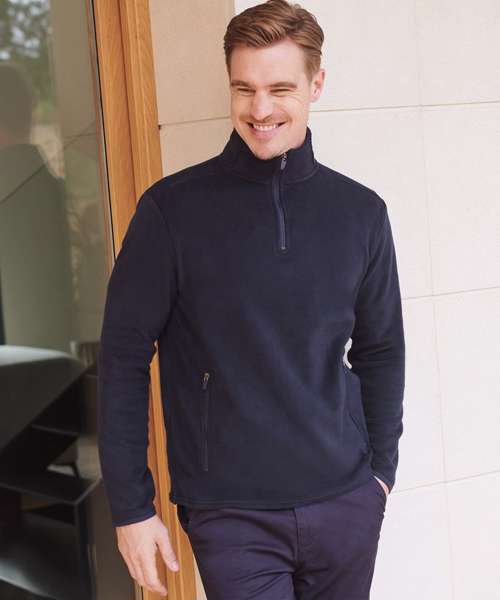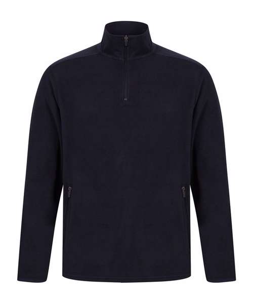 Anti-pill microfleece fabric ideal for decoration. ¼ exposed zipper at neck. Soft stand collar. 2 exposed zipper side pockets. Shoulder panel. Self-coloured binding at cuff. Twin-needle hem. Henbury cut out label.