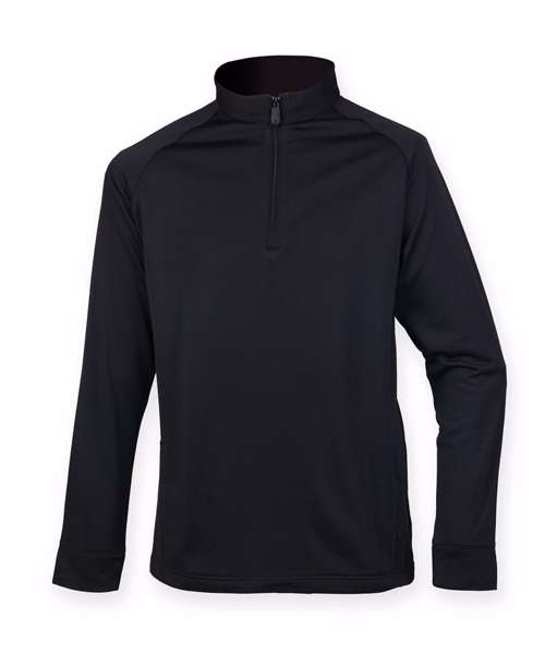 This on-trend adults quarter-zip with wicking finish is a great option for a sporting environment. The wicking finish will ensure you stay fresh for maximum performance.
