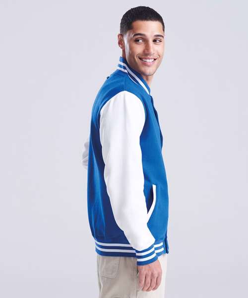 Get the varsity look with this classic American inspired jacket. Contrast sleeves and poppers complete this look which is fashioned from our heavyweight fabric which is ideal for decoration.