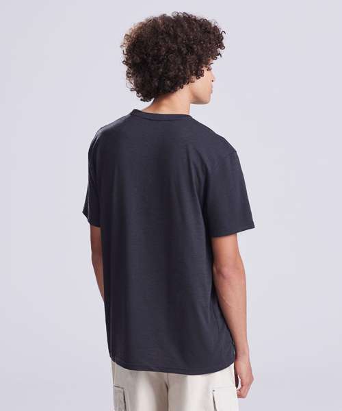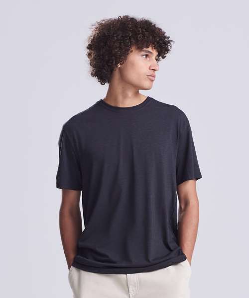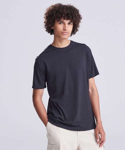 Modern fit short sleeved T. Size tab label. Triblend fabric for style and comfort. Taped neck. Twin-needle stitching on sleeves and bottom hem. Ribbed crew neck style. soft-feel fabric. Side seams. Set-in sleeves.