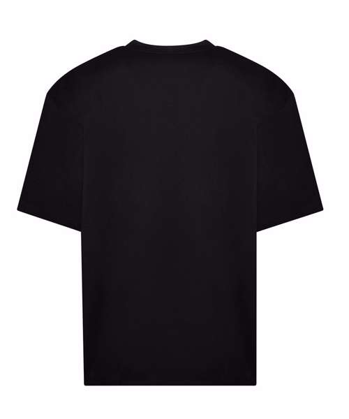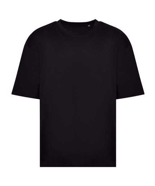 Oversized fit with side seams. Short sleeves. Ribbed crew neck style, with taped neck. Set-in sleeve. Size label only, for easy rebranding – colour-coded black for unisex. Combed ringspun cotton for ultra comfort. Surface excellent for print or embroidery. Twin-needle stitching detail on sleeves and bottom hem.