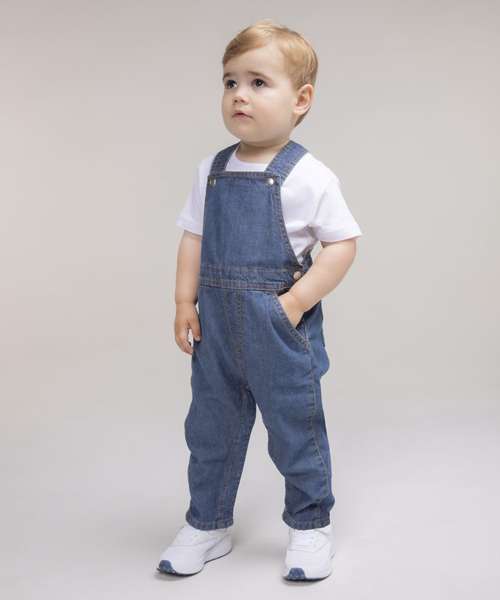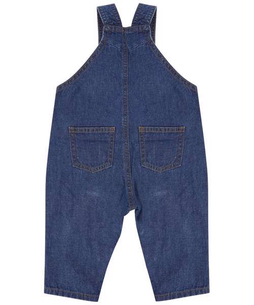 Kids dungarees with YKK poppers on straps, side seams and around inseam. Jean-style stitching on all seams and 2 rear patch pockets. Tag-free.