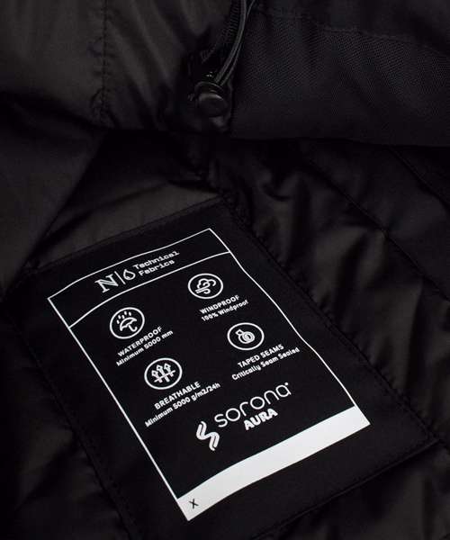 YKK reversible main zip. Detachable and adjustable hood. Windbreaker cuff in Lycra at sleeve. Recycled fabric. Windproof. Water-repellent finish (Bionic Finish® ECO). Water resistance: 5000mm. Breathability: 5000gsm/24h. Outer fabric: Recycled fabric. Padding - Sorona® Aura insulation (made from 30% Bio-based fabric). Global Recycled Standard (GRS Certified, CU1038206). Global Recycled Standard (GRS Certified, CU1038206).