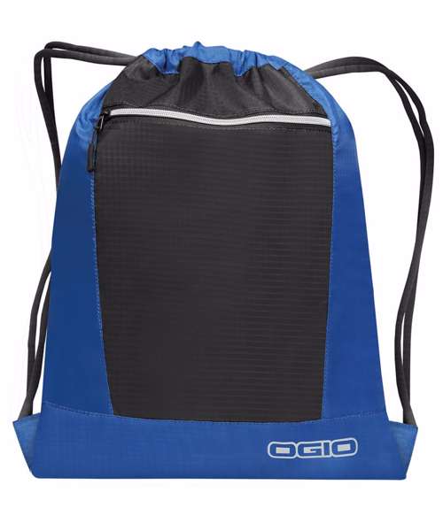 Easy access front storage pocket. Side water bottle stretch mesh pocket. Side stash valuables pocket. Stretch mesh phone pocket on shoulder strap. Carryall with drawstring top. Sling style, padded shoulder strap.