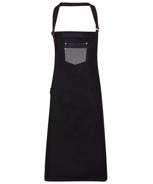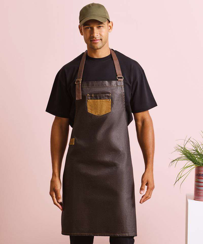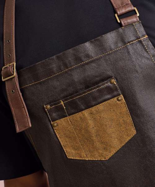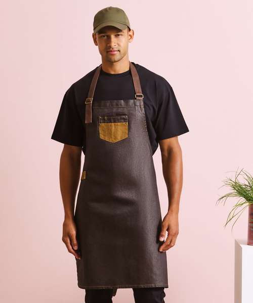 PR136: Division waxed-look denim bib apron with faux leather