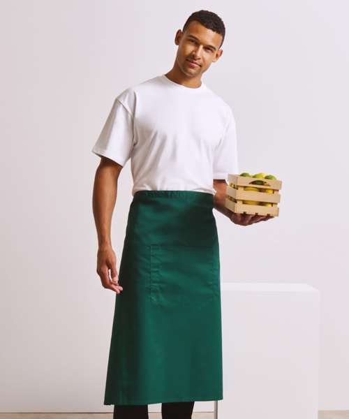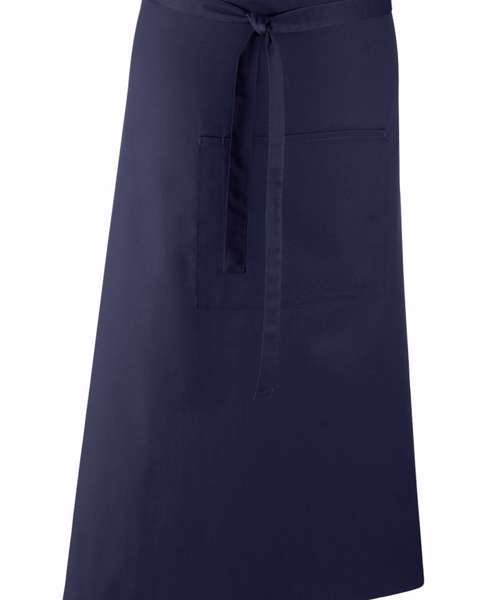 A bar apron that falls to a length of 80cm offering the wearer maximum coverage. This apron is part of the 'Colours' collection from Premier. To the centre of the apron is a useful centre pocket for carrying tablet devices, together with a combined pen compartment.