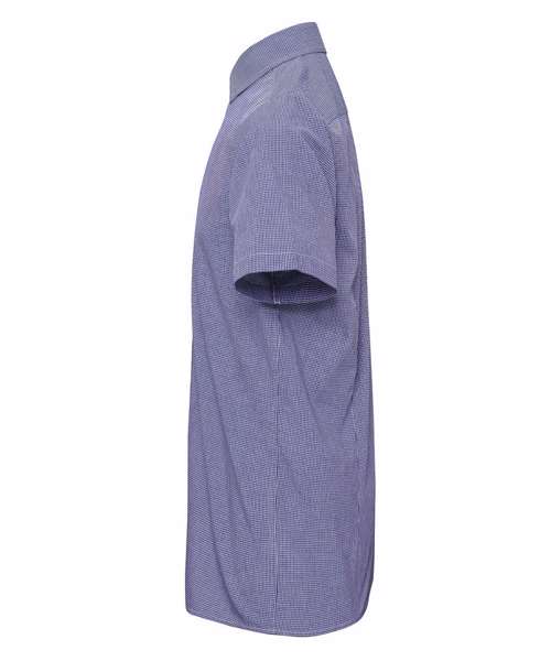 A short sleeve shirt with soft collar styling. Two colour Microcheck gingham style pattern. Semi-fitted styling.