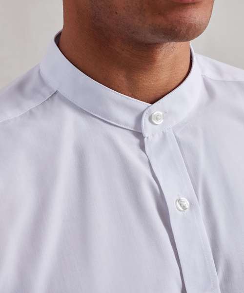 This iconic shirt is a welcome addition to the Hospitalitywear collection and is a popular style worn at the front-of-house. The distinctive collar features a narrow banded fabric strip that runs around the neck and fastens at the front with a top button. Double buttons to the cuff and a sleeve guard allows for a more casual roll-back option on the arm. Styled to be unisex so everyone can introduce this trendy yet timeless piece into their teamwear.