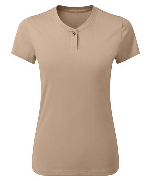 A popular style for service staff, this women’s short sleeve t-shirt is made from a combination of certified recycled polyester and cotton. Designed with a single button on the placket and a narrow banded collar, this style has a soft feel to the fabric.