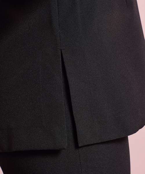 Beauty and spa tunic with mandarin collar. Side yoke detail with four feature buttons and satin trim. Princess seams and bust darts for flattering fit. Side vents. Back zip fastening. Satin piping to collar edge. Short sleeves. Easycare.