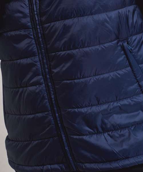 Men’s padded zip-through jacket with horizontal stitching to form baffles, ensuring an even distribution of insulation. Covered zip with chin guard and zip guard to the inner. Styled with a cadet collar. Two welt jet zipped side pockets with a single open pocket to the inner for handy storage. Elasticated cuffs measuring one inch wide. Full embroidery access to the entire jacket through an internal zip in the lining. Lightweight and folds downs easily into its own stuff sack. Made with 100% certified recycled fabrics.