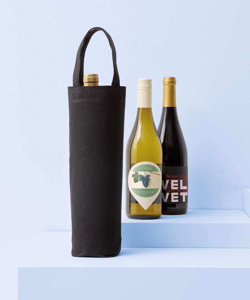 This premium bottle bag makes light work of carrying drinks and refreshments. Made from 100% recycled cotton canvas, with short loop handles, it’s designed to hold bottles of up to 1.5 litres in capacity. Available in a choice of black or natural shades that can be personalised with your own design.