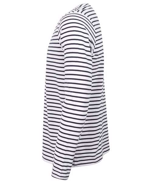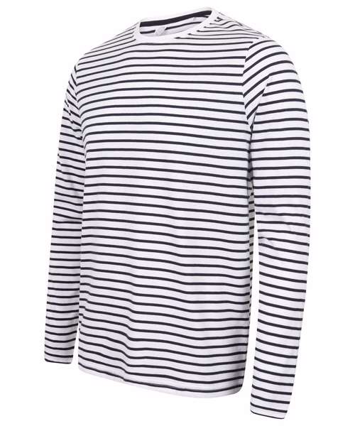 You can't go wrong with stripes. Fun. Impactful. A modern classic. Made with quality striped cotton Jersey, this soft-to-touch unisex long sleeved striped T has a regular body fit to suit all shapes. The stretch rib neck and back neck tape ensure a premium finish. The tear-out label is removable for re-branding.