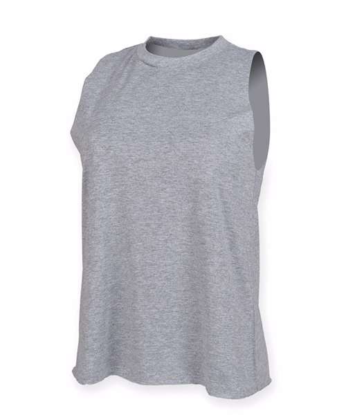 High fashion. High impact. It's all about style and freedom to move with this stretchy ribbed crew neck vest, with raw edge slash armholes and hem. Modern, athletic and cool. Features tear-out label for easy rebranding.