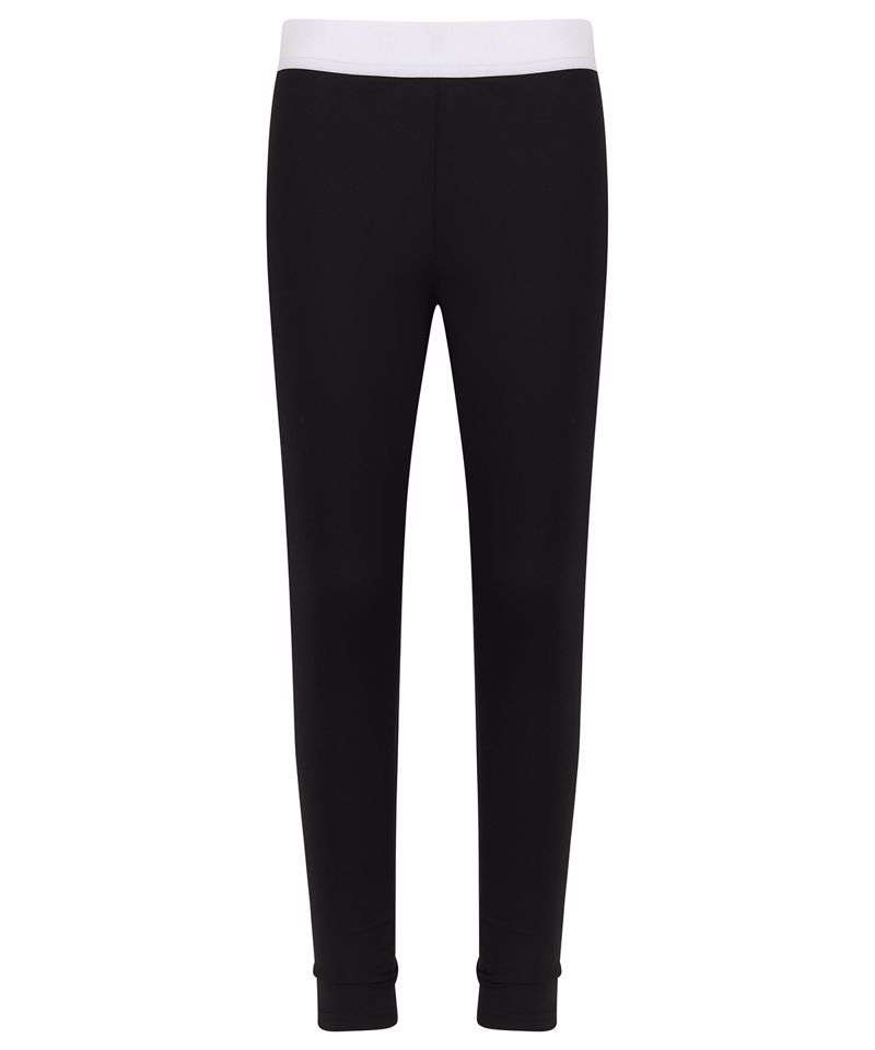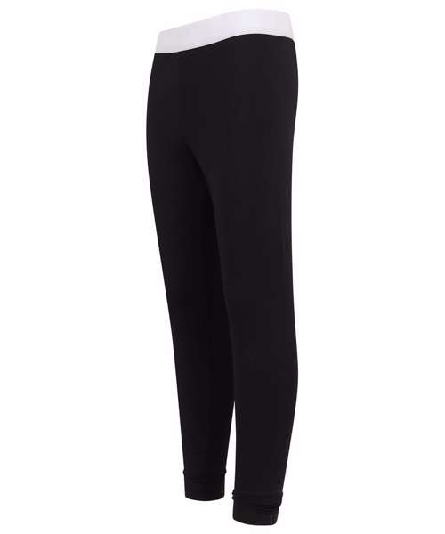 Kids fashion leggings. Soft elastic jacquard waistband, suitable for sublimation printing. Non-transparent stretch polyester fabric. Tear-out label for easy re-branding.