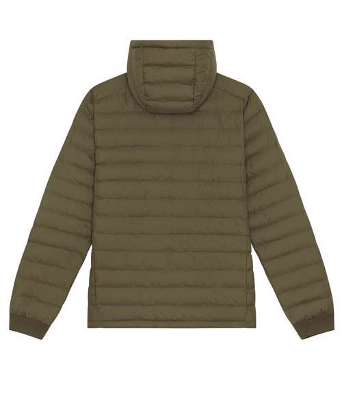 High collar with detachable hood including metal matte hidden snaps. Hood opening and bottom hem with adjustable plastic stopper and elastic cord. Zipped welt pockets with extra grosgrain pull. Fully quilted. 1x1 rib at sleeve hem.