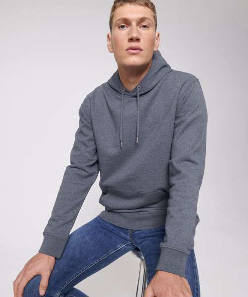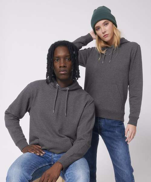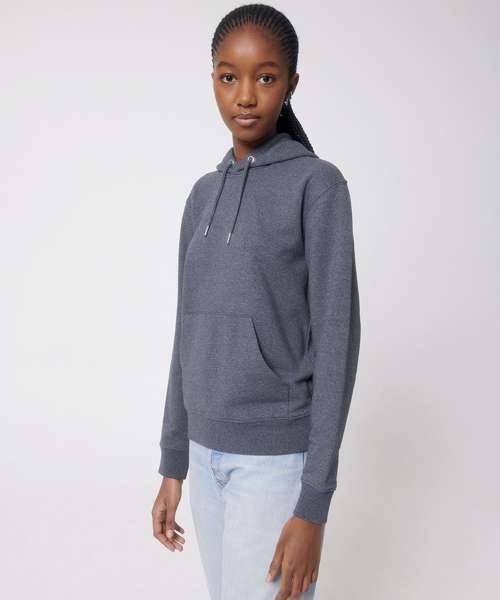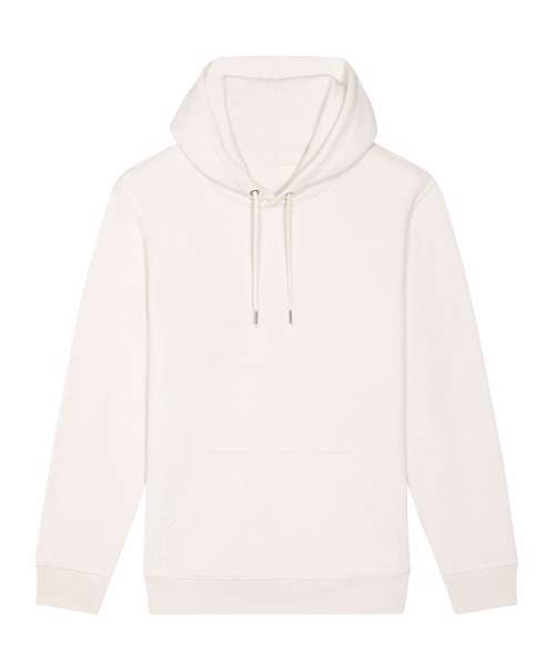 The unisex medium fit recycled hoodie sweatshirt is made from in-house organic cutting waste. Includes double-layered hood in self-fabric, and round drawcords in matching body colour with metal tipping.