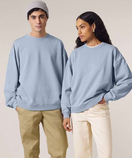 Premium, oversized, garment-dyed crew neck sweatshirt in 100% organic cotton, 350gsm. Streetwear-inspired fit and details. On-trend colours. Excellent printability.