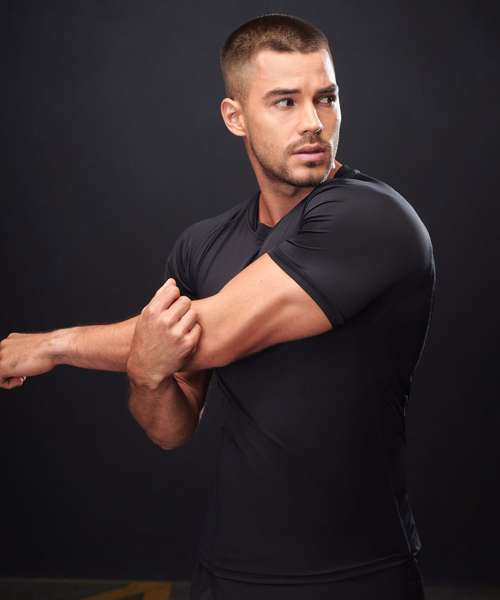 Slim fit t-shirt, 2 piece sports crew neck, shaped raglan sleeves, mesh side panels and back yoke.