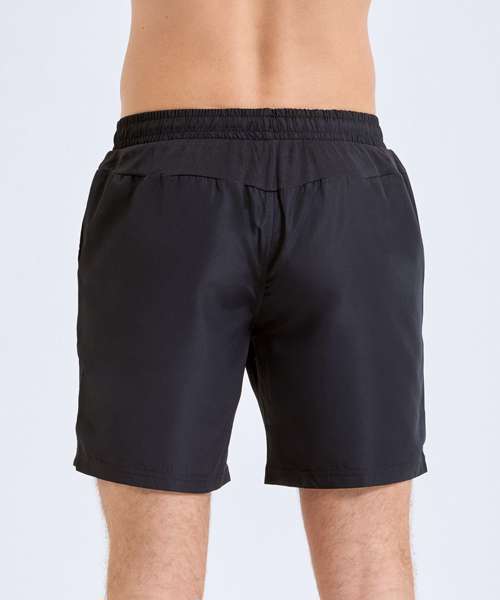 Wicking fabric. Elasticated waist. Woven fabric. Mid thigh length. Lightweight. Black heat seal tape detail on the front. Inside leg- 18cm. We recommend using block out vinyl and inks.Product contains no branded neck or waist label. Removable Kimble or looped garment tags. Inner seam label holds important product information on one label with a second label containing brand information which can be cut-away.