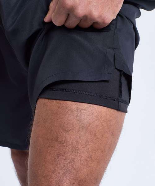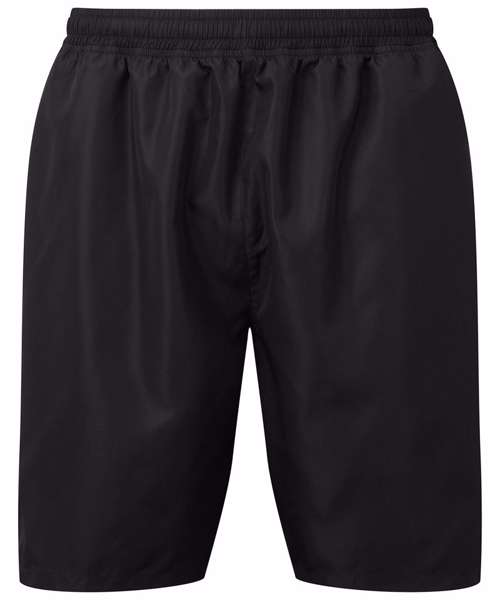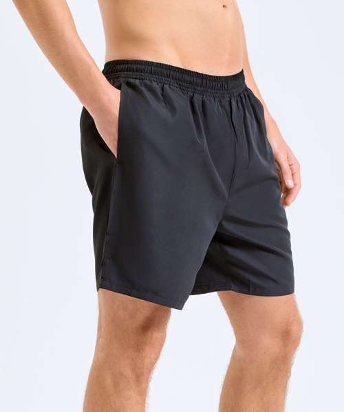 Wicking fabric. Elasticated waist with drawcord inner. Inner liner shorts for support. Mid-thigh length. Lightweight. Zip pocket to back for storing essentials. Two front pockets. Drop hem detailing to front of shorts, whilst a drop hem to the front of the shorts adds a unique twist. Inside leg- 16.5cm. We recommend using block out vinyl and inks.Product contains no branded neck or waist label. Removable Kimble or looped garment tags. Inner seam label holds important product information on one label with a second label containing brand information which can be cut-away.
