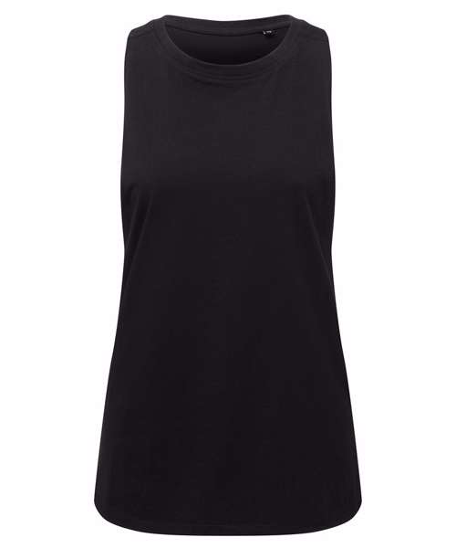 Crew neck tank top. Organic cotton. Deep-drop armholes with racerback. Curved hem detailing. We recommend using block out vinyl and inks.Product contains no branded neck or waist label. Removable Kimble or looped garment tags. Inner seam label holds important product information on one label with a second label containing brand information which can be cut-away.