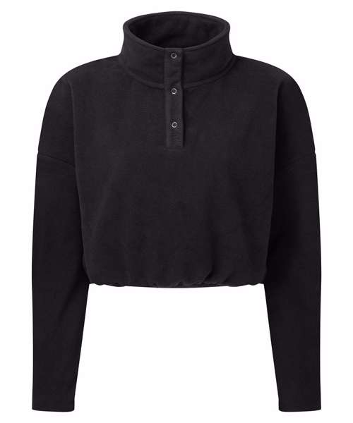 Cropped pull-over fleece with high neck. 1/4 neck popper fastenings to front. Elasticated waistband. We recommend using block out vinyl and inks.Product contains no branded neck or waist label. Removable Kimble or looped garment tags. Inner seam label holds important product information on one label with a second label containing brand information which can be cut-away.