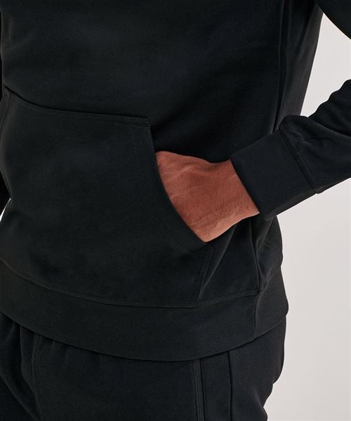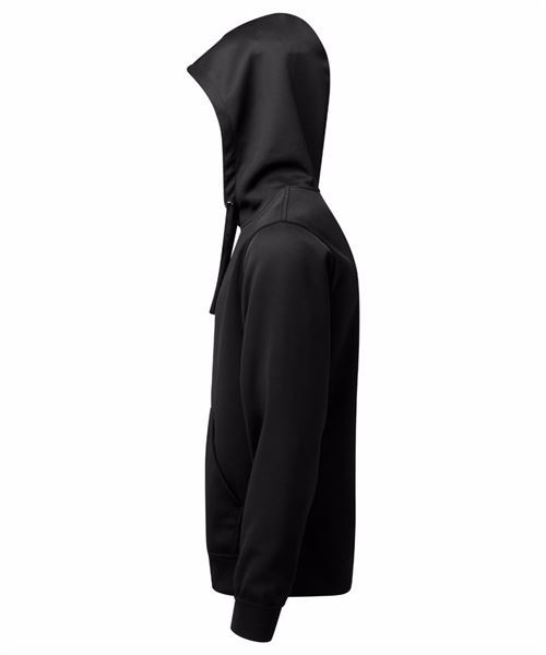 Unisex hooded style with kangaroo pocket. Drawstring cord fastenings to hood with chrome eyelets. Double-panelled hood. Cuffed sleeves and hem. Made with recycled polyester, Spun dyed technology. Spun dye melts colour pigments and recycled polyester together, creating coloured fibres using fewer chemicals, less water and less CO2. Spun dye fabric also improves the colour-fastness of garments. We recommend using block out vinyl and inks.Product contains no branded neck or waist label. Removable Kimble or looped garment tags. Inner seam label holds important product information on one label with a second label containing brand information which can be cut-away.