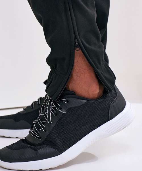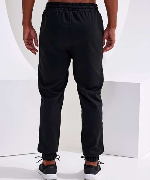 Elasticated waistband. Classic fit. Cord-tie fastenings to waist. Zip pockets to sides. Elasticated cuffs with zip openings to side of legs. Made with recycled polyester, Spun dyed technology. Spun dye melts colour pigments and recycled polyester together, creating coloured fibres using fewer chemicals, less water and less CO2. Spun dyed fabric also improves the colour-fastness of garments. We recommend using block out vinyl and inks.Product contains no branded neck or waist label.* Removable Kimble or looped garment tags. Inner seam label holds important product information on one label with a second label containing brand information which can be cut-away.