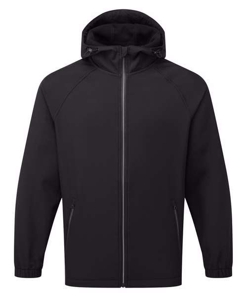 Reliable 2-layer bonded softshell jacket with hood. Full-length zip with storm flap and chin guard. Three-panelled hood with adjustable toggles. Two front zipped pockets. Elasticated cuffs. Raglan sleeves. Shaped to fit. Inner hem with adjustable toggles. Showerproof. Windproof. Two inside pockets. Easy re-label system. Product contains no branded neck label. Removable Kimble or looped garment tags. Inner seam label holds important product information on one label, with a second label containing brand information which can be cut away.