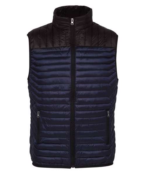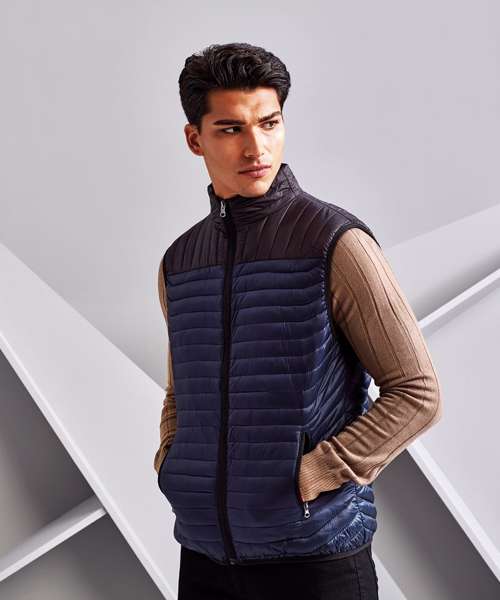 Tonal reverse coil zip on centre front with signature zip puller. Contour stitched sandwiched narrow baffles. 250gsm lightweight polyester fill. Internal binding on all seams. Stretch binding around armholes and hem for added protection. Contrast shoulder panelling. Reverse coil zips on pockets. Internal back neck hanger loop. Product contains no branded neck label.* Removable Kimble or looped garment tags. Inner seam label holds important product information on one label with a second label containing brand information which can be cut-away.