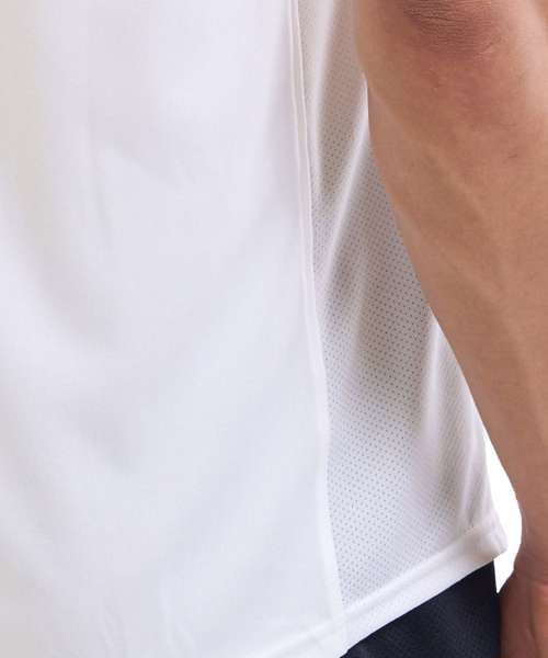 Smooth, lightweight, fast-drying fabric for superior performance. Material wicks sweat & dries really fast. Mesh side panels for added breathability. Shaped hem.